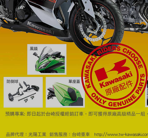 首批的Ninja 300其實送蠻多好禮的,單座蓋、加長風鏡、防倒球都是好料阿...可惜這是4月份首批預購才有的