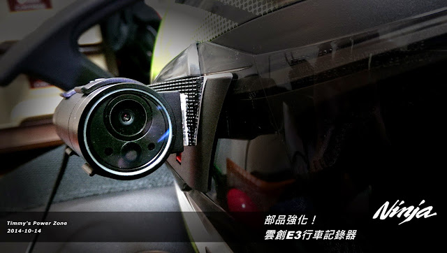 雷射定位燈剛開機會亮,錄影後幾秒就熄滅了,我都當作開機燈號在看,安全帽戴起來通電後,看到前方兩顆紅點表示已經開機了XD。E3有個設計不錯就是狀態燈號在鏡頭正面,而不是在機身上,這對架在安全帽上的人非常好用,因為你只需要頭低下去看一下後照鏡,就可以知道機器是否正常運作中。