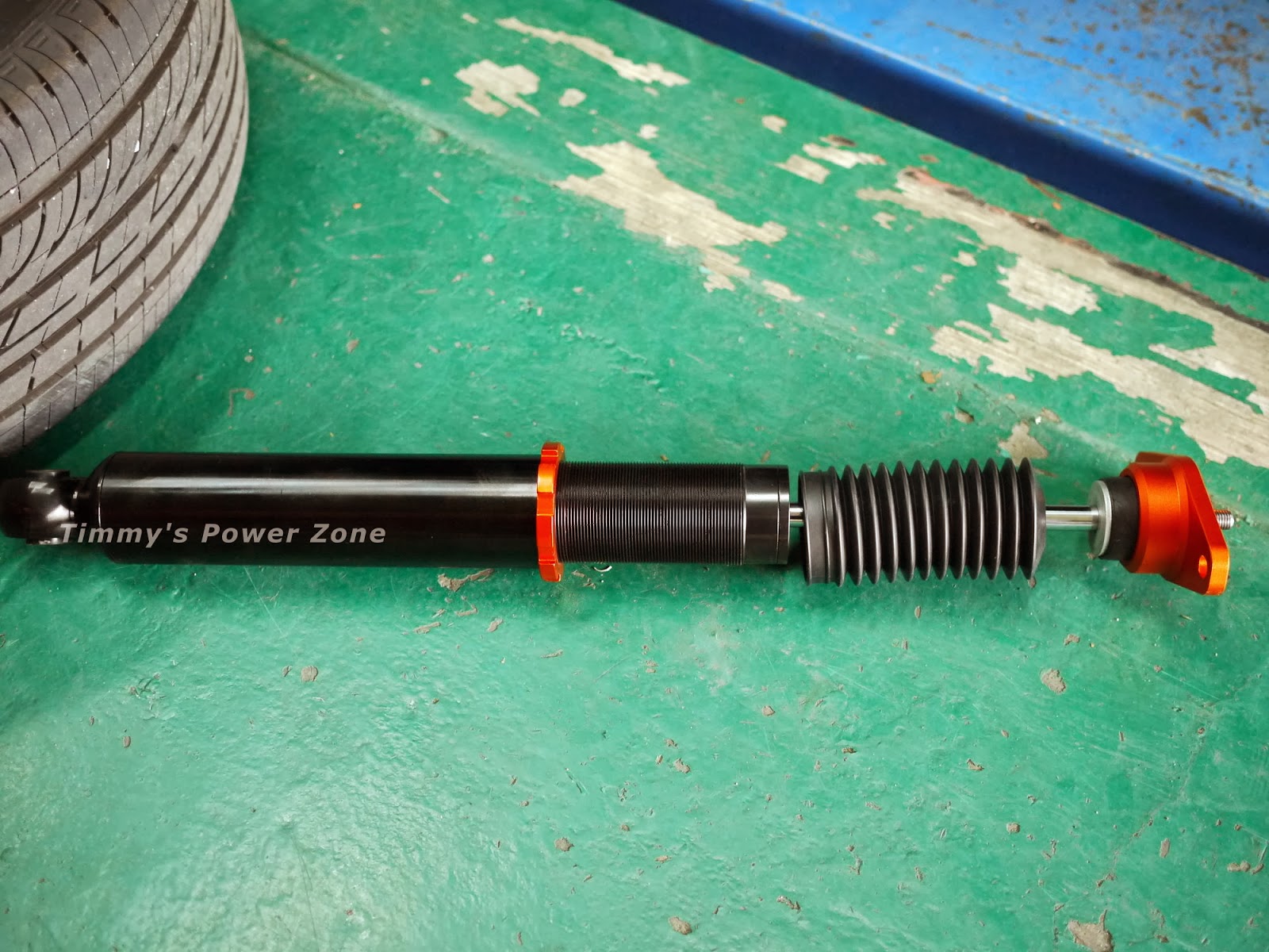 新避震登場!黑色桶身+白色彈簧+橘色調整環,配色很有質感。