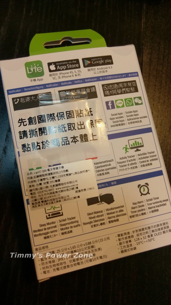 接著Q-Band系列出了Q66,取消了Q62的【紫外線偵測】(有看到其他網友分享那個紫外線功能不太靈光...貌似只是光線偵測,取消也好XD),按鍵改成觸控式,錶帶改附贈2組。