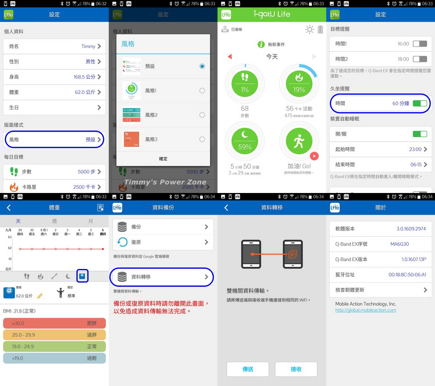 新版本的APP這回多了首頁的【風格】切換功能,另外有增加【久坐提醒】,【體重紀錄】、【資料轉移】等功能,算是蠻大幅度的更新。