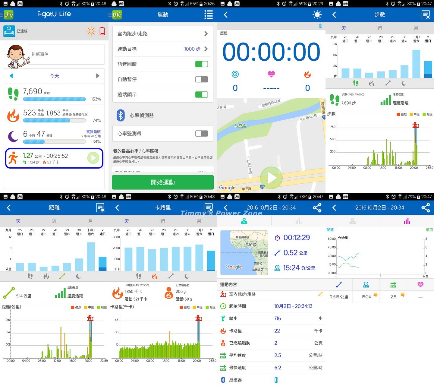 如果有在運動模式下活動,則在紀錄內會看到紅色的運動小人圖示,直方圖則是會顯示深藍色,表示當天運動模式所佔的比例。其他如地圖、里程、速度資訊也會透過手機記錄下來,整合的還蠻不錯的。