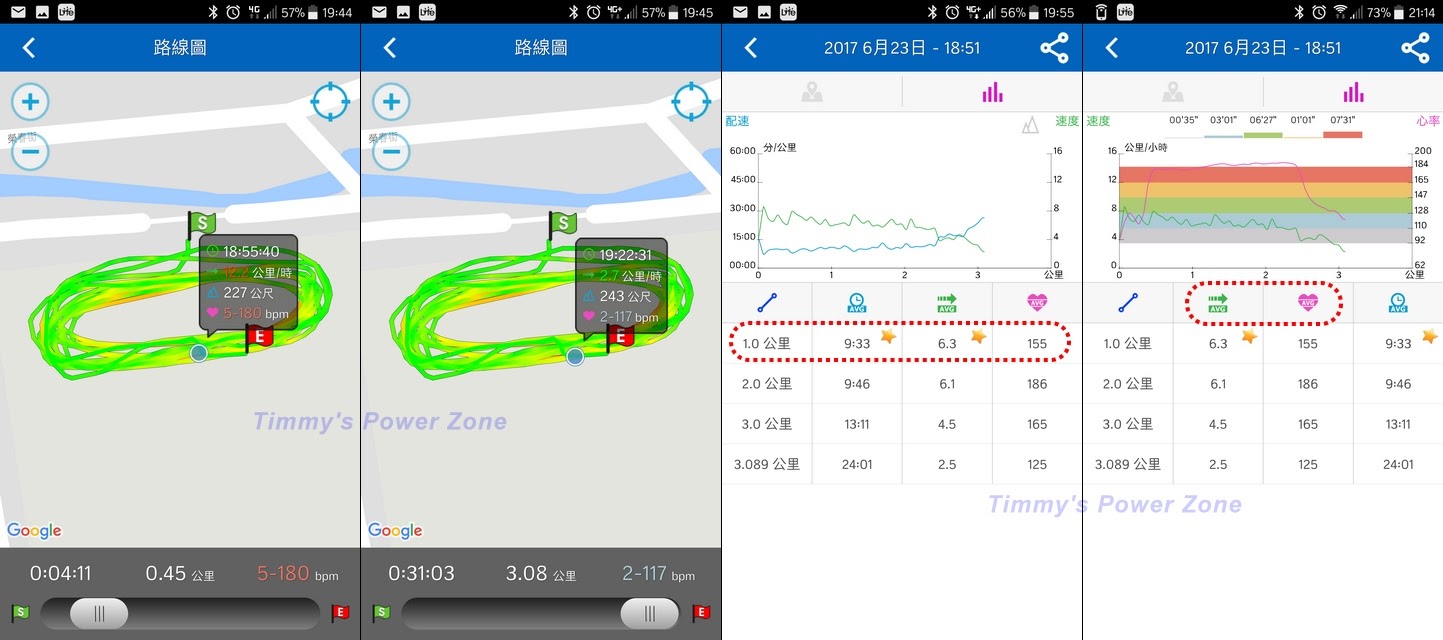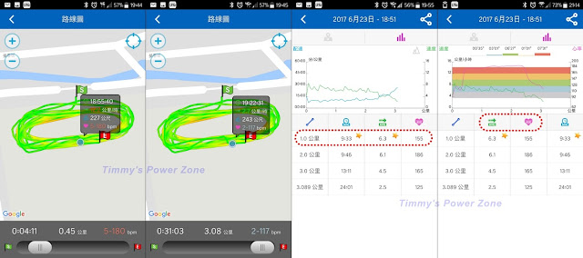 另外軌跡部份也可以用replay的方式讓數據回放,重現當時跑步的數據變化。