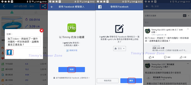 FB分享功能是我第一次使用,先前配戴Q66並沒有用過。在手機上點選分享,IgotU Life會幫你直接引用FB的API貼文到自己的塗鴉牆上。不過Android的FB APP似乎看不出貼文的效果,只有看到一個連結。