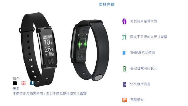 後面則有APP支援的特色、心率、運動模式等一些特色描述,用多國語言呈現,顯見市場不僅是台灣而已。