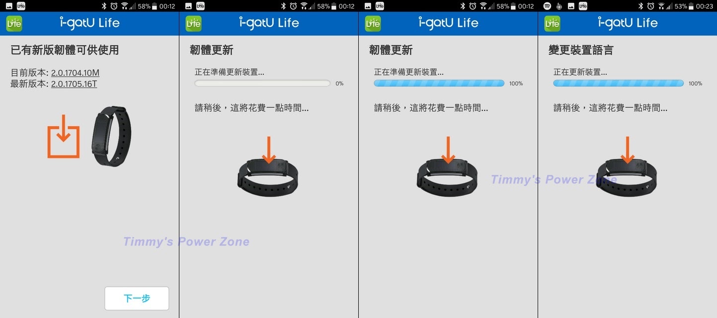 充飽電後,手環會提示得先跟手機上的APP連線。記得要先安裝IgotU Life