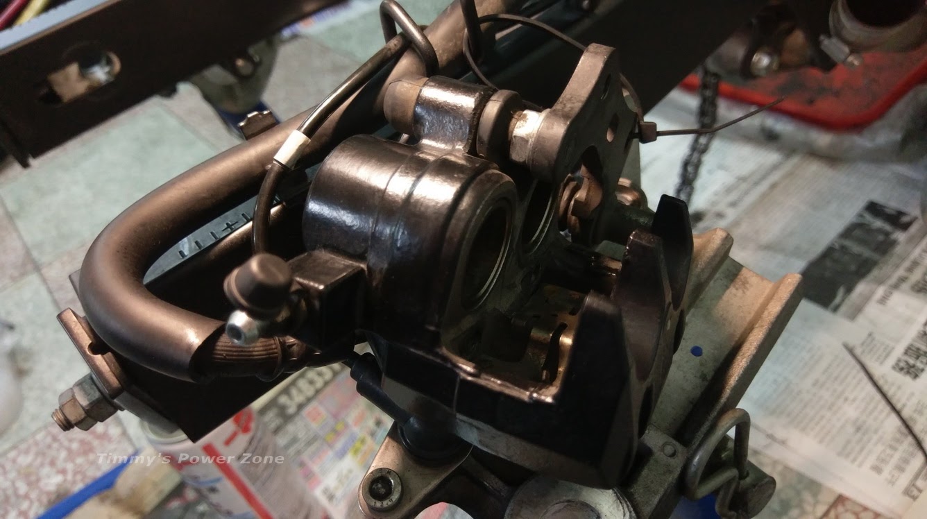 清潔來令片,習慣上我都會把來令片卸下來整理,清理卡鉗上的粉塵、活塞。不過這次我出了個包,就是整理完畢,來令片裝回去後,我忘記把插銷鎖上,只有放進去而已沒有鎖緊,還騎了500km才發現。幸好沒有噴出來,不然還真不知道會發生什麼事@@