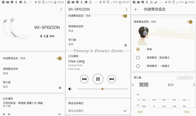 這是我第一款使用有APP支援的耳機,挺新鮮的。APP可以顯示耳機的電量、控制音量、音場等化器設定,還有最重要的「降噪」設定。