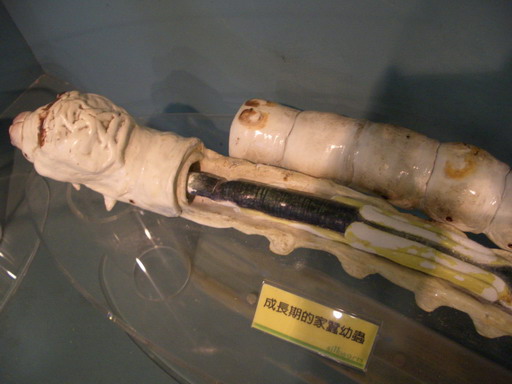 蠻噁心的解剖蠶寶寶= =....中間那條黑黑的...該不會是大便吧...