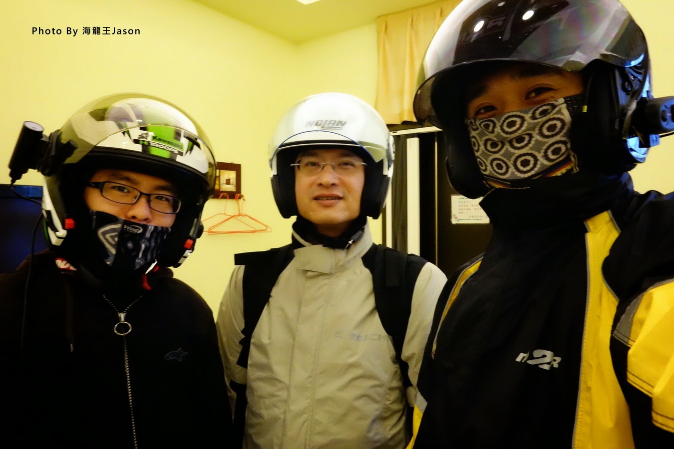 著裝完畢出發前合照一張,老B仔跟我們一起騎車這兩天看似年輕了不少,哈哈哈