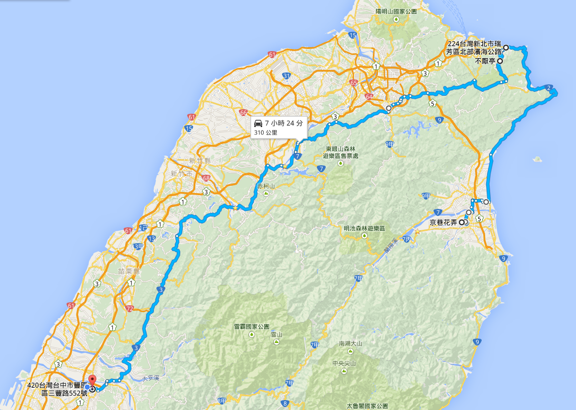 兩天總里程剛剛好560km,約有190km是台中到新竹這一段