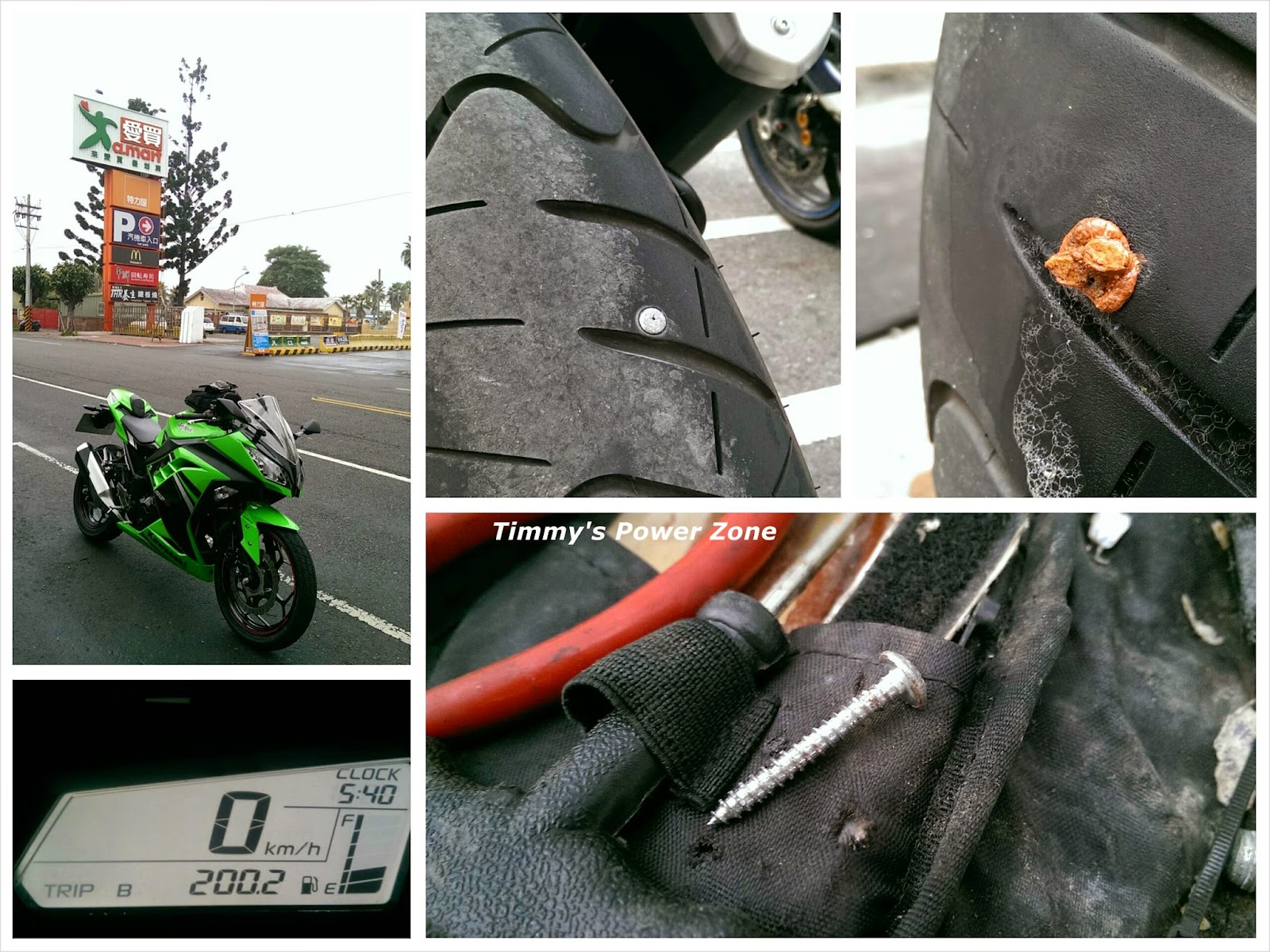 騎車的人相信都有碰過輪胎中釘,我的小綠綠在入手1600km就中釘了!