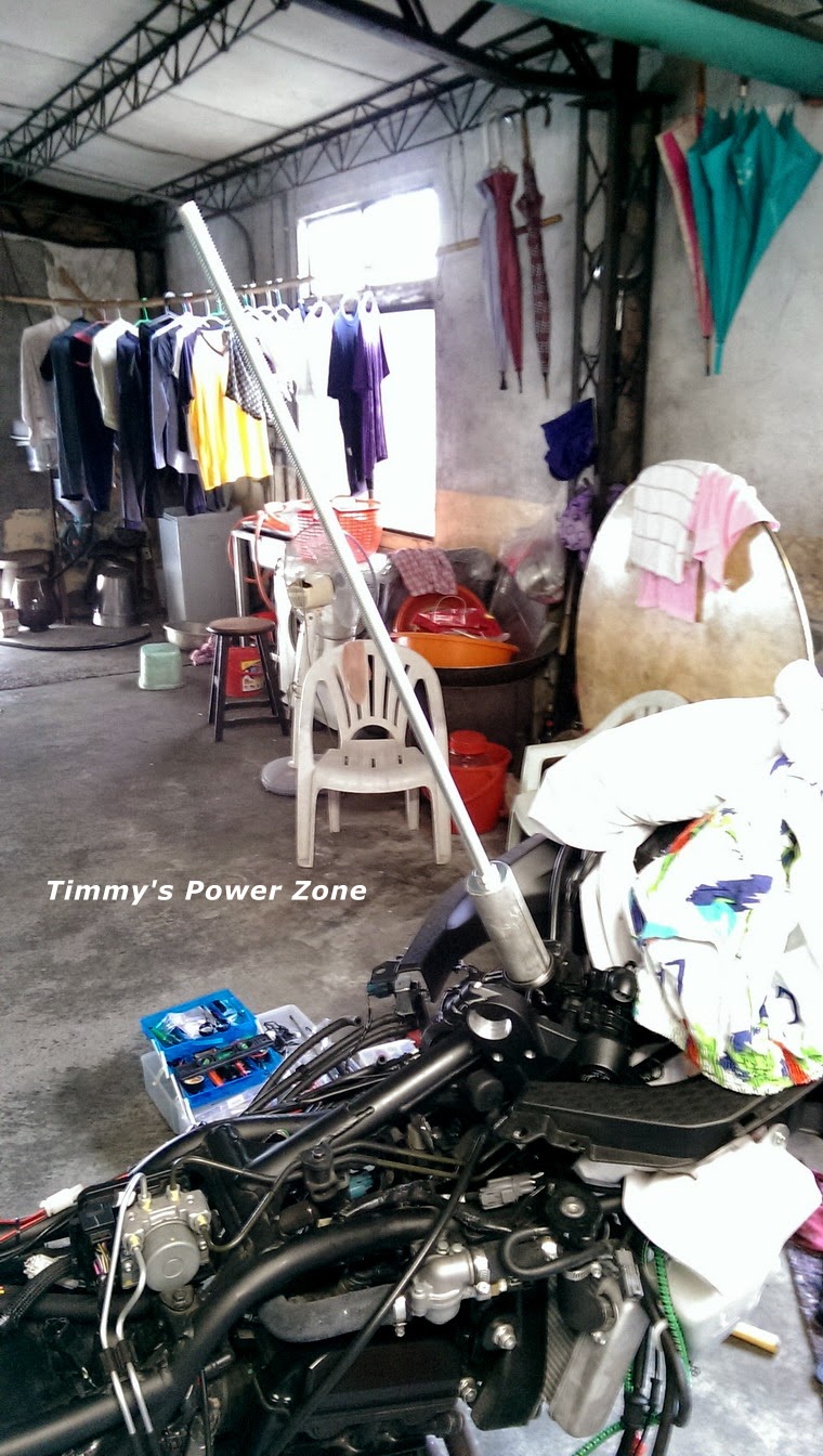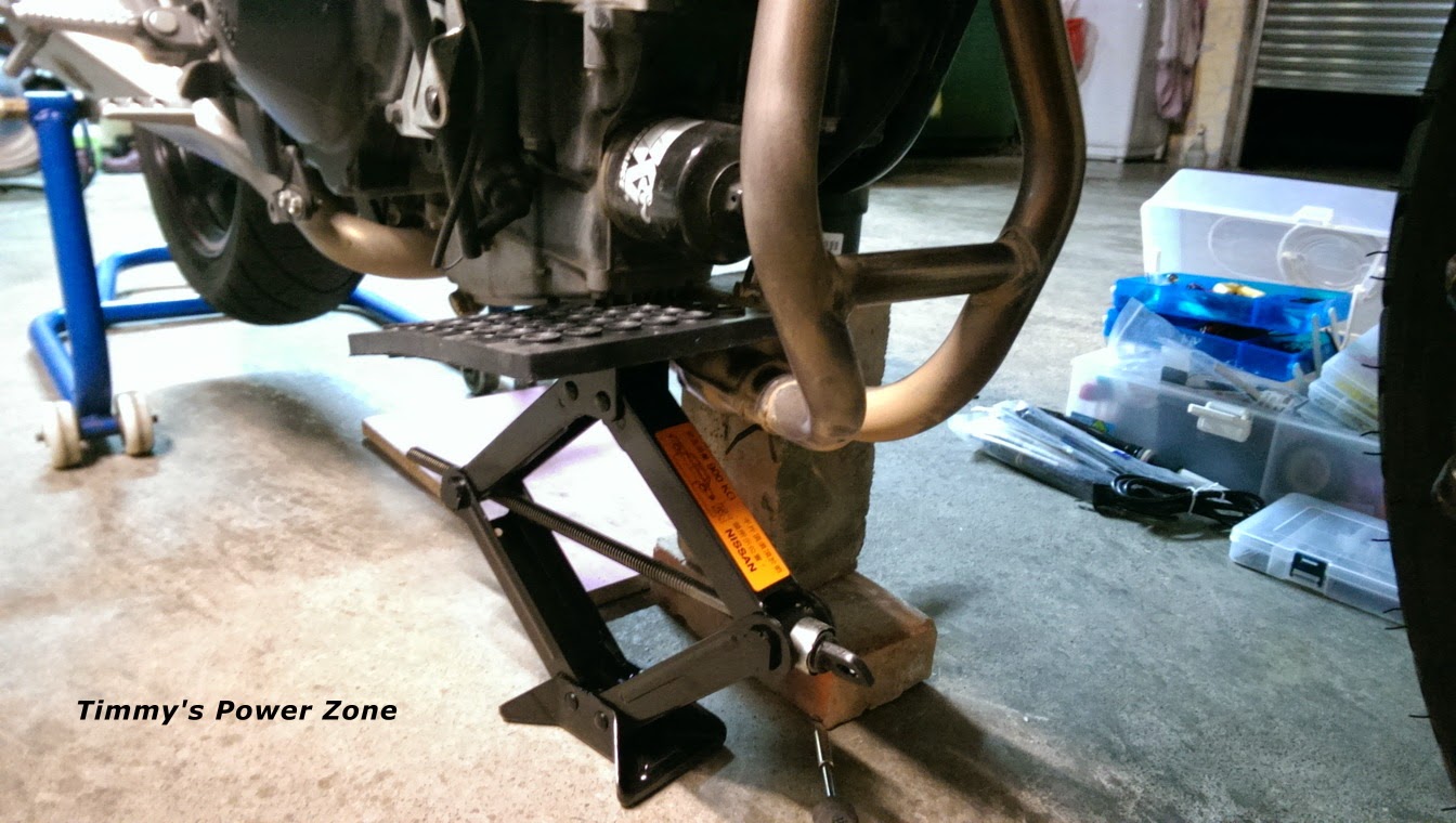 首先是車殼全拆再把車子頂高,由於我沒有吊架,只能用頂的,土炮用車用千斤頂+避震墊頂高