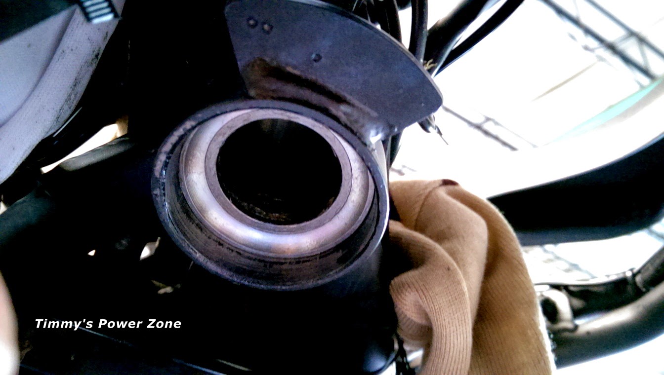 由於上珠碗是沒有油封的!若有水滲進去,表示上珠碗毫無防水能力,水直接滲入下珠碗,而下珠碗因為有油封,水便積在下珠碗,導致開始生鏽!又或是可能是經銷商曾經放鬆我的珠碗,造成珠碗有些許間隙,洗車便滲水進去?這點很難驗證。
