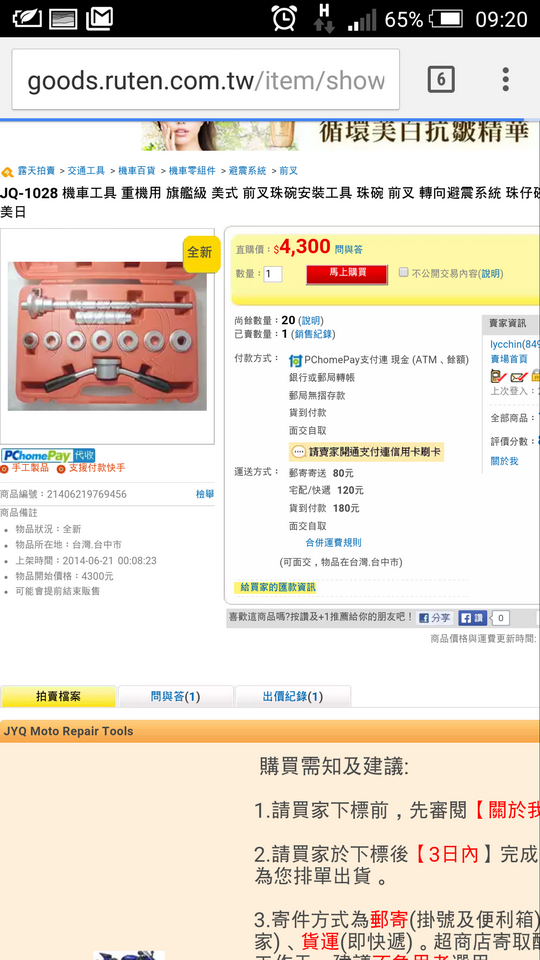 換完立馬上路試車,一試真的是太悲劇了~因為那個自動傾倒的感覺還是非常明顯,這下我暈了~老闆幫我把車頭稍微舉起來,原地轉動龍頭,發現轉到右手邊突然會陷下去,明顯有個『檻』的感覺,這下GG了...