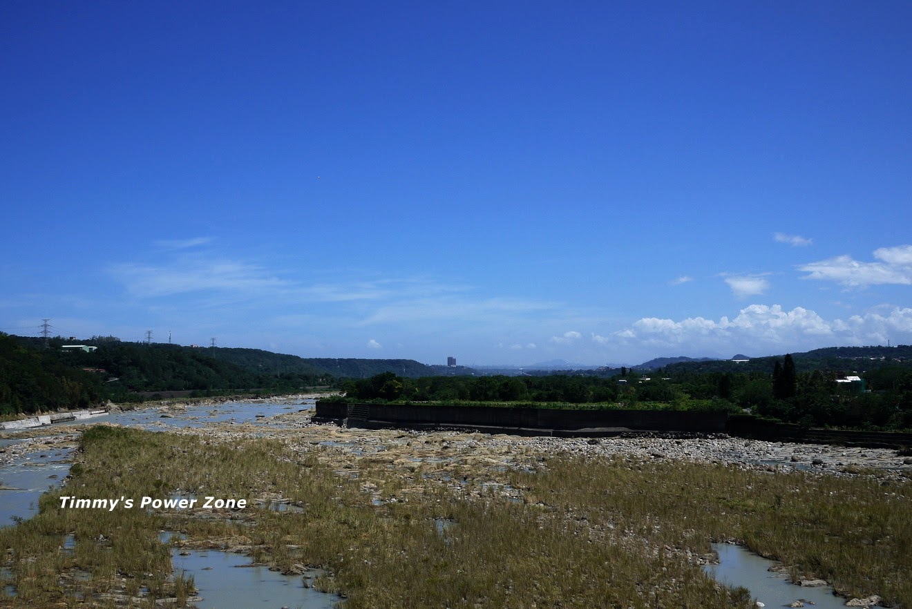 下游河床,這幾天天氣好,沒洩洪,河床水位不高~但是晴空萬里看了很爽