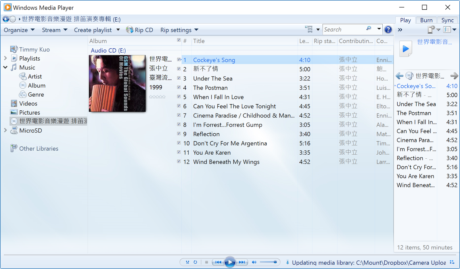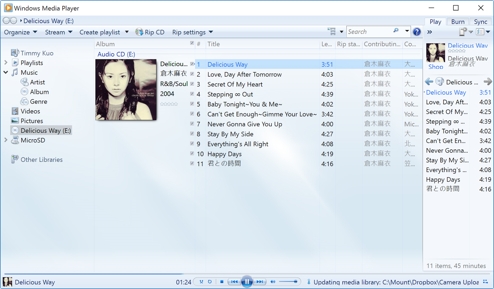 我挑了兩張CD來測試【倉木麻衣 Mai Kuraki Delicious Way】、【張中立 世界電影漫遊排笛演奏專輯】