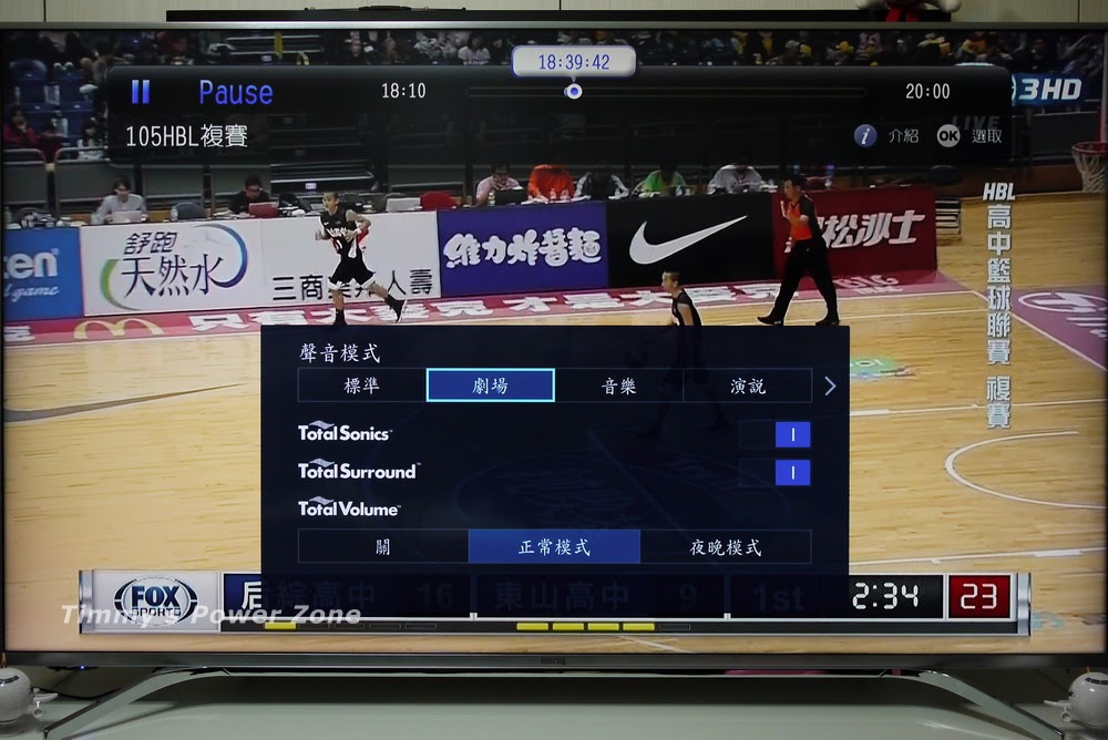 預設「劇場模式」會開啟TotalSonics,開啟之後立體聲效果更明顯了,也明顯有比未開啟之前感受到環繞效果,低音的音域也更加渾厚。