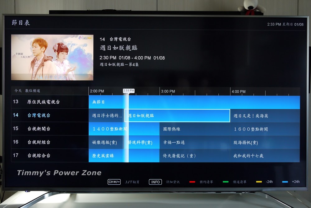 數位電視的好處就是除了播放影像外,節目資訊都可以從畫面上看到。