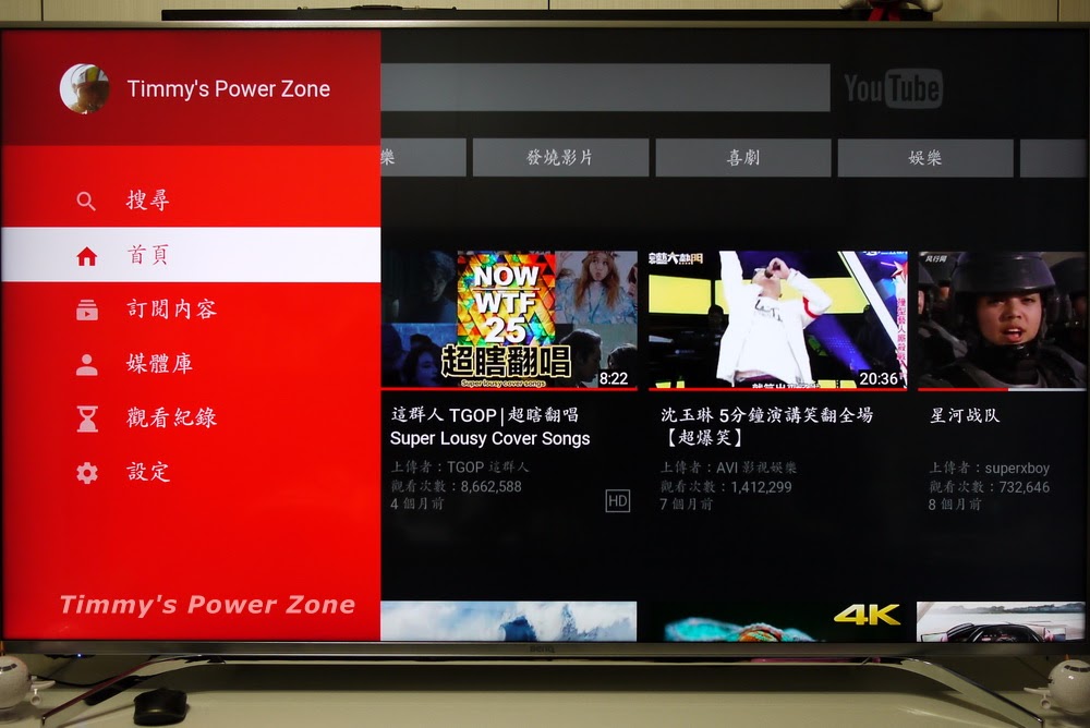 65SY700也內建YouTube APP,且遙控器一樣也有快速鍵可快速進入APP畫面。不過不同於Netflix,YouTube啟動的時候需要一些載入時間,大約5秒左右。