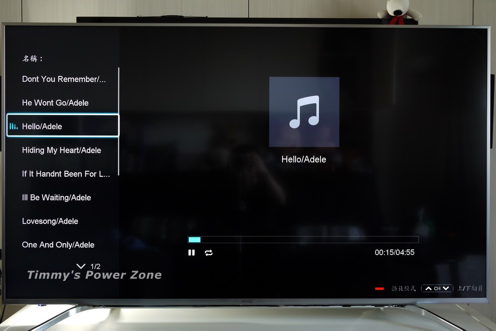 這時候一定要特別強調65SY700的【智慧節能】功能,它可以幫你把螢幕關閉,只留喇叭繼續發聲,不用浪費多餘(螢幕顯示)電力就可以播放音樂。對於使用有線電視的我相當好用,因為頻道中有十幾台的音樂台,這樣就可以用電視播歌又不浪費電力了。