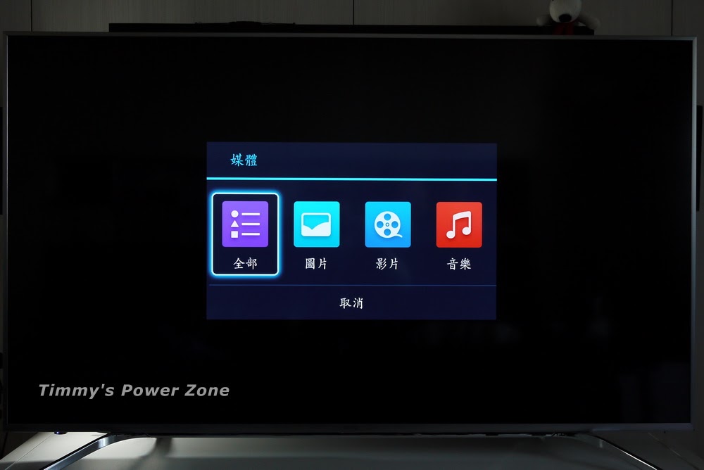 如果是在開機狀態下插入USB儲存裝置,電視會直接跳出選單,詢問你要開啟的媒體類型