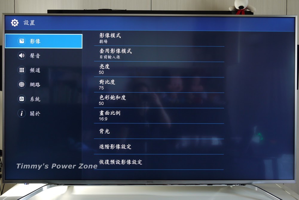 影像部份可以設定基本的「亮度」、「對比」、「背光」、「飽和度」等,也有模式概念可以快速套用情境。65SY700可以針對不同視訊來源(如HDMI、色差端子...)個別設定,也可以選擇「所有輸入源」,這樣就不須要每一種輸入來源都要設定過一次了,非常方便。