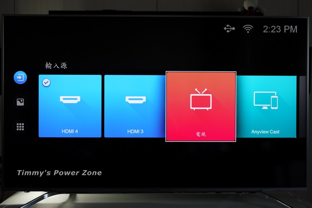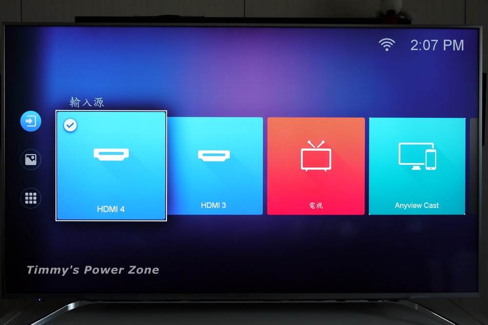 在電視上選取輸入源時即可看到4組HDMI符號,65SY700很聰明的會將已經插上HDMI線的圖示放在前方,沒有接線的HDMI則會顯示灰色,且會在最後方,讓使用者不會誤選,是蠻貼心的功能。