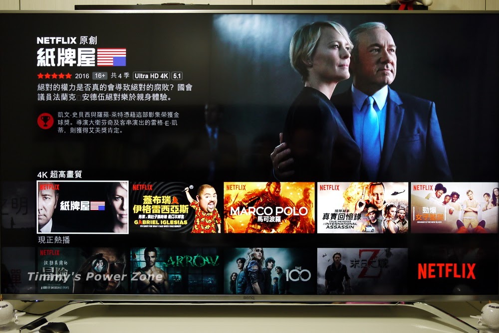 Netflix是前兩年進入台灣市場的當紅美式影集提供者,最大的賣點就是部份影片有提供4K影片、HDR、Dolby 5.1等技術。4K的影片播放起來相當有震撼力,畫面細緻的程度幾乎可以算出演員臉上的皺紋有幾條了~~!!