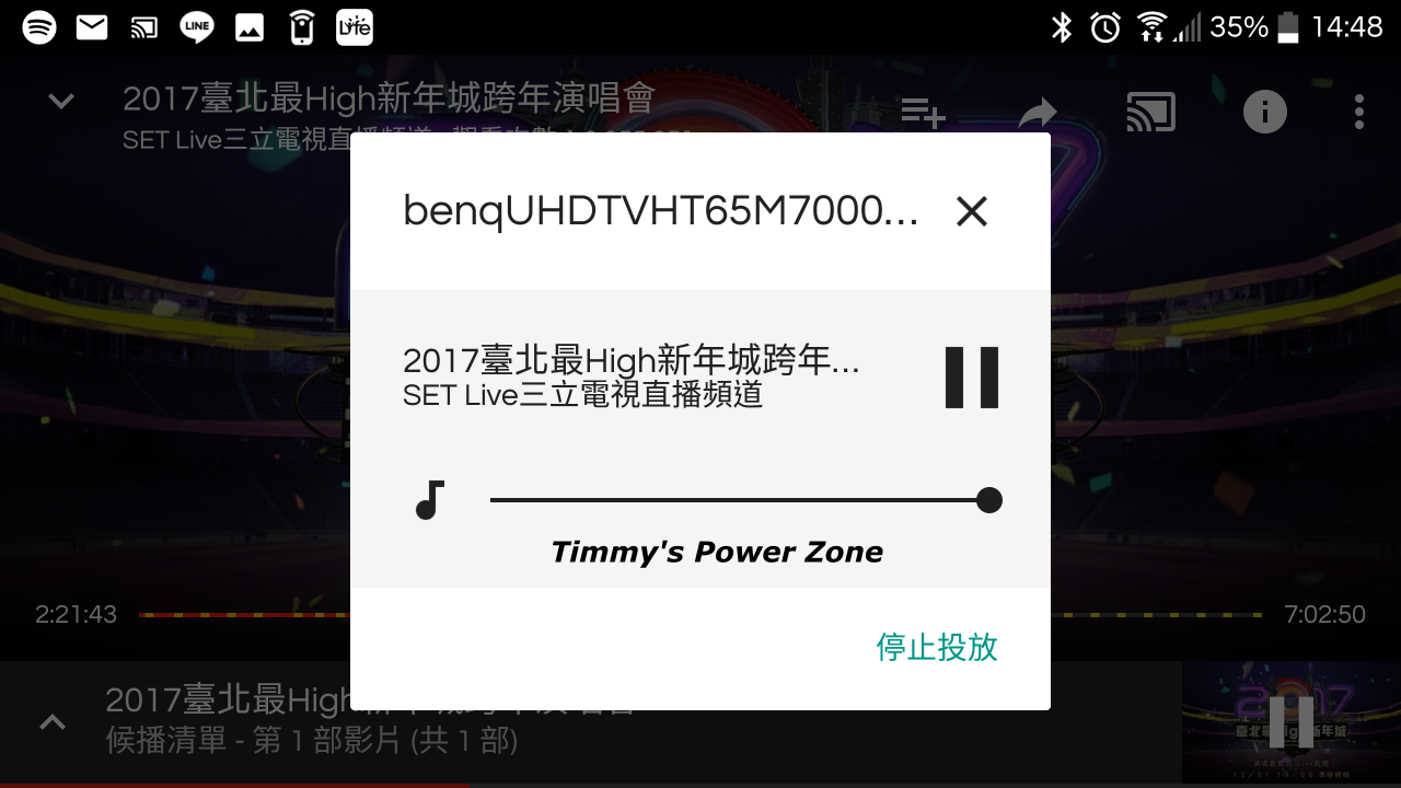 推送過程中,手機的YouTube一樣可以操作音量、選擇片段...等