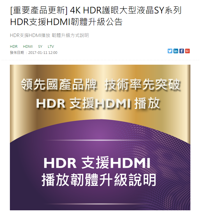 截至截稿前,收到BenQ通知目前已經提供SY系列機種全面更新韌體,更新後可以支援HDMI輸入源的HDR訊號!