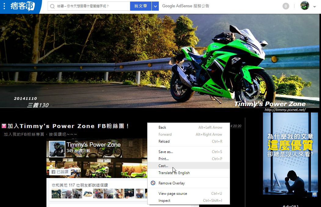 一般網頁投放就是在頁面點選右鍵→選取「Cast」