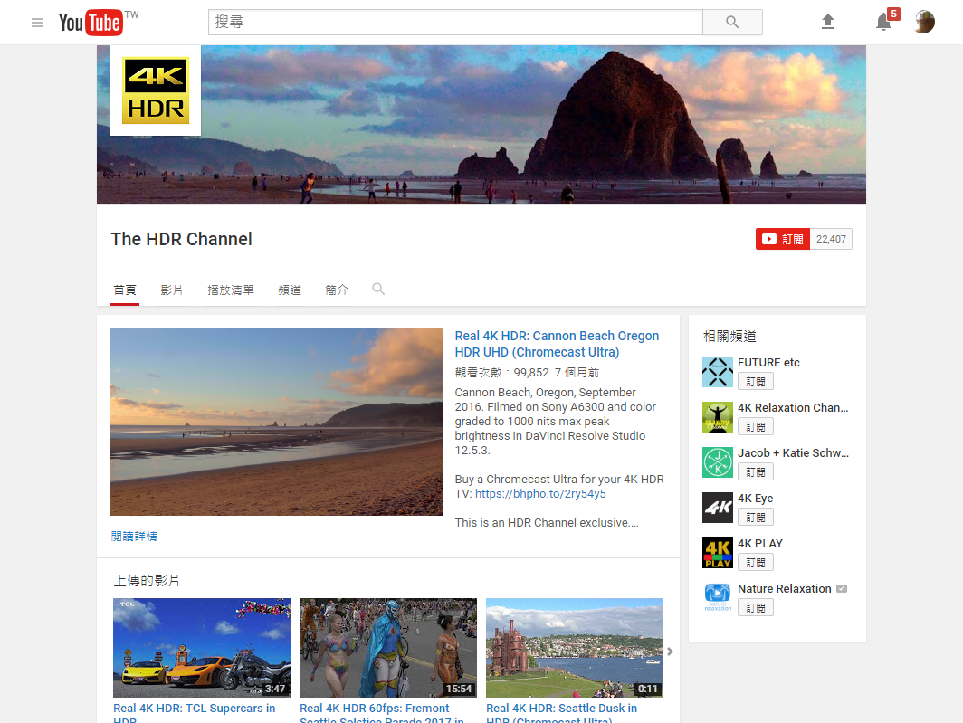 這裡有個HDR Channel專門播放HDR影片用,很多都是4K+HDR的影片