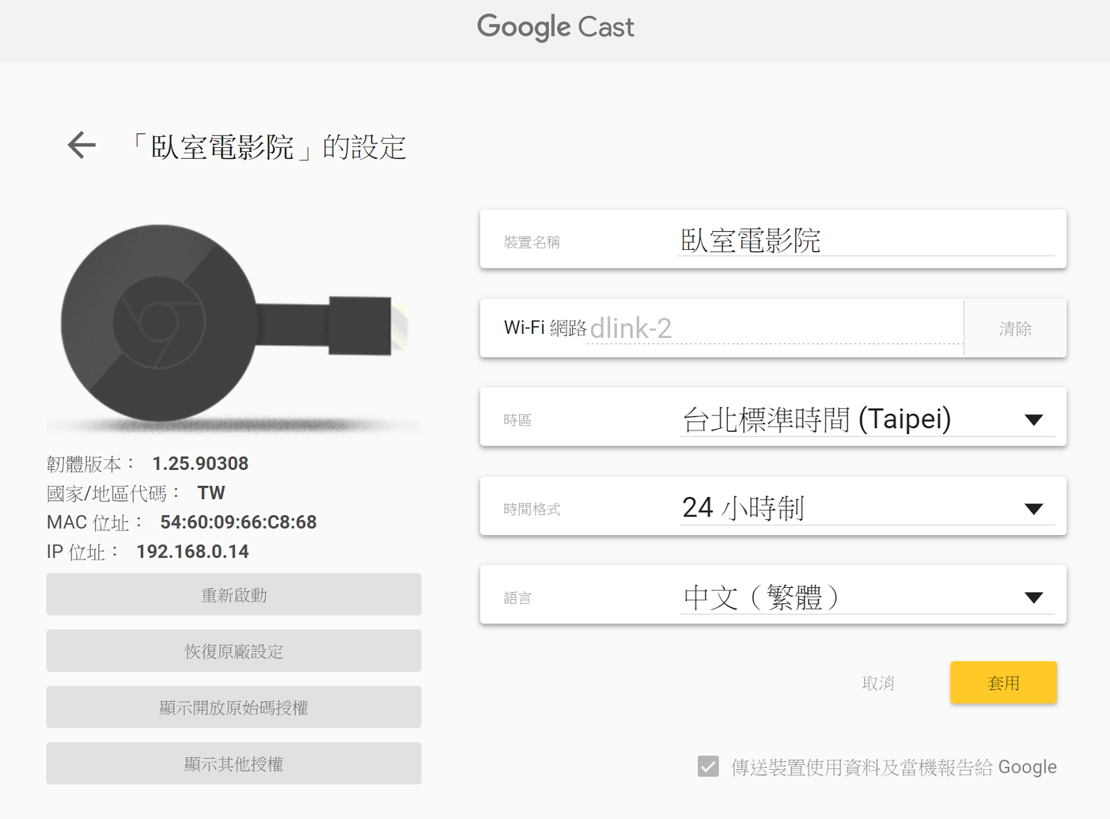 我原本的Chromecast,相關設定都可以在這調整