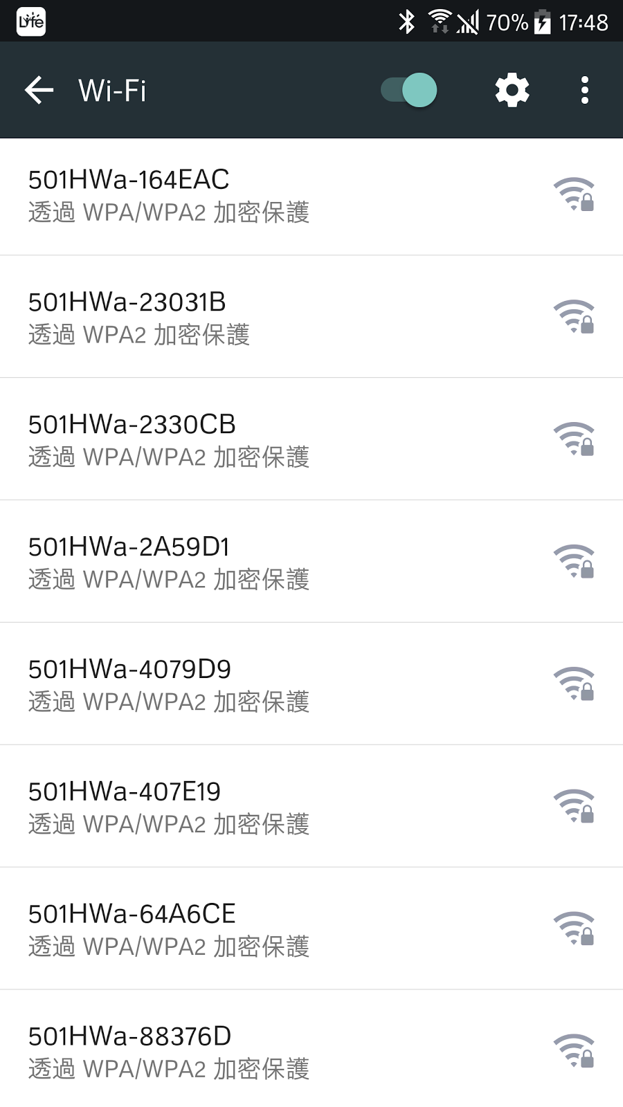 打開Wifi分享機,結果發現大家的AP名稱都差不多,塞滿了手機的Wifi清單XD,看來大家都租用同一家的分享器Orz