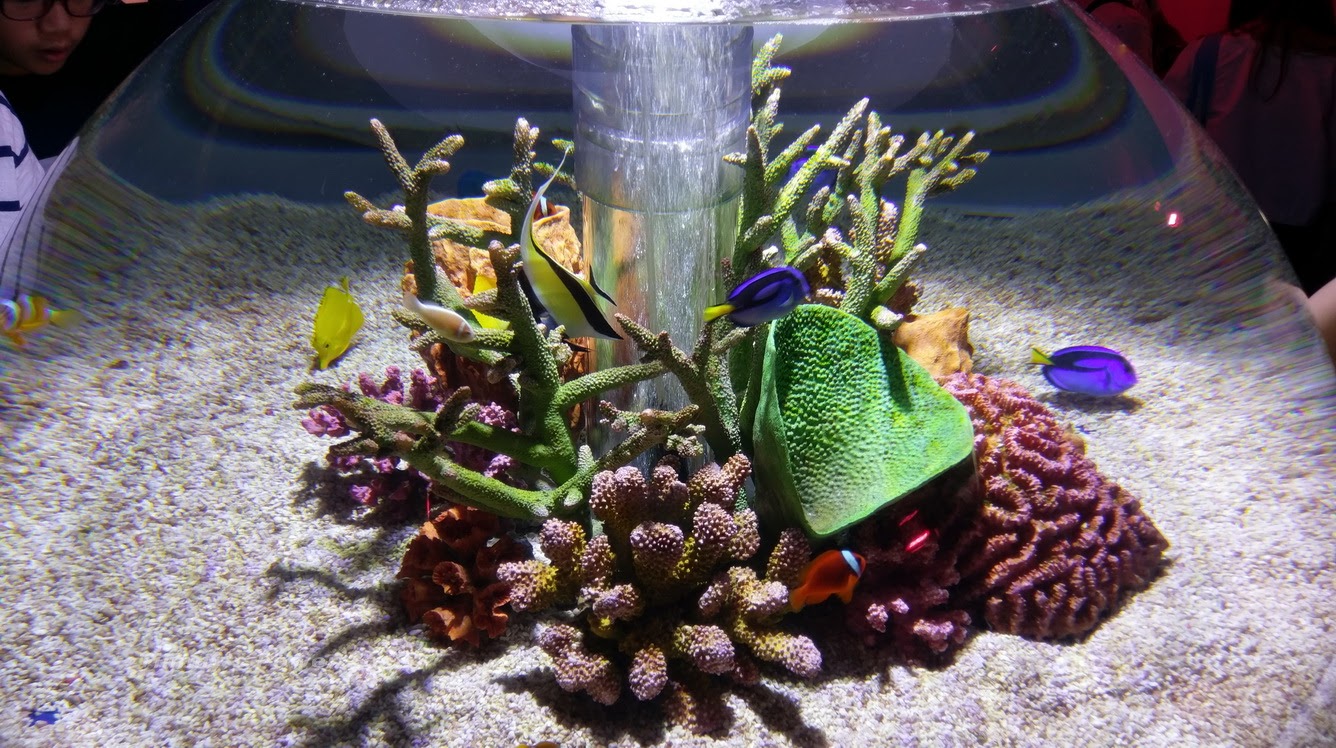 除了大水槽之外,也是有展出一些較小的水族箱,像下面這個展示小丑魚且很漂亮的半圓球型水族箱。