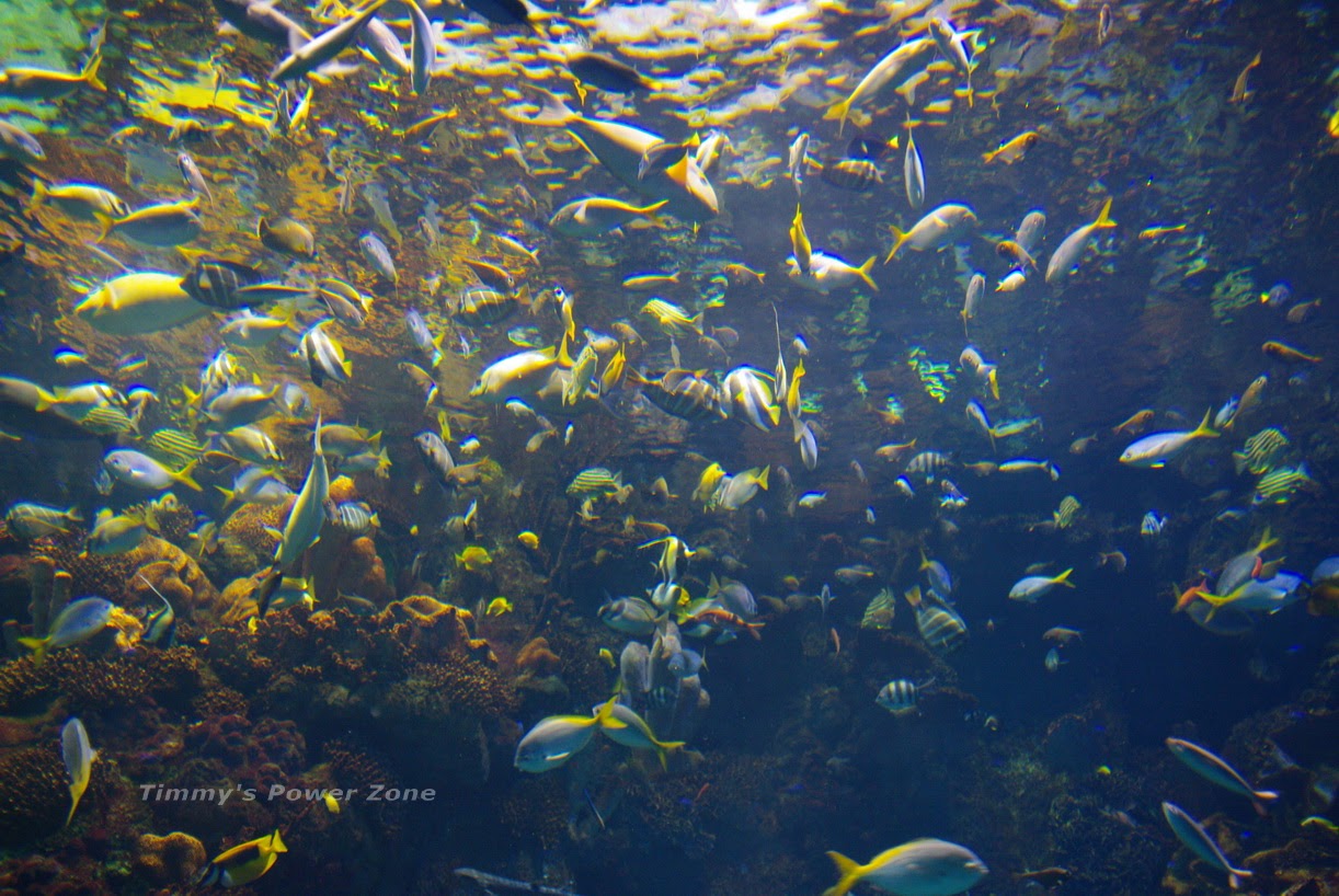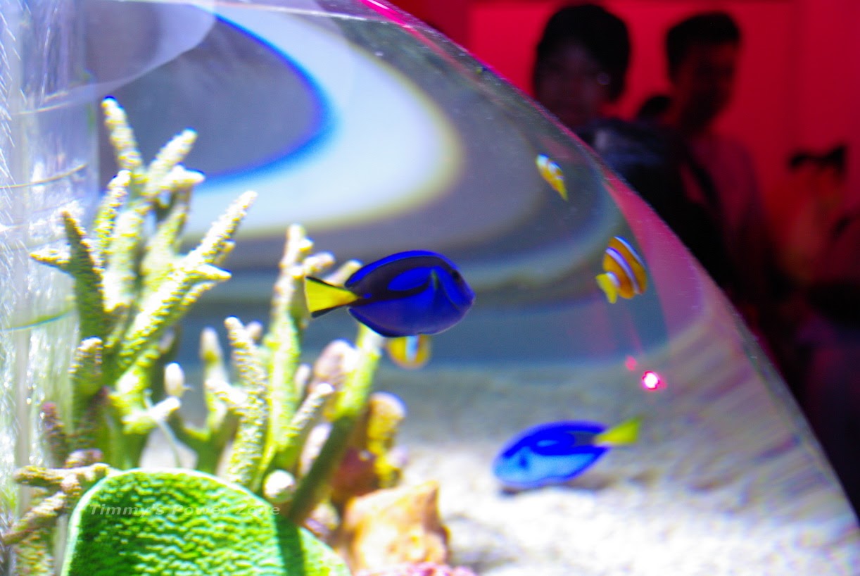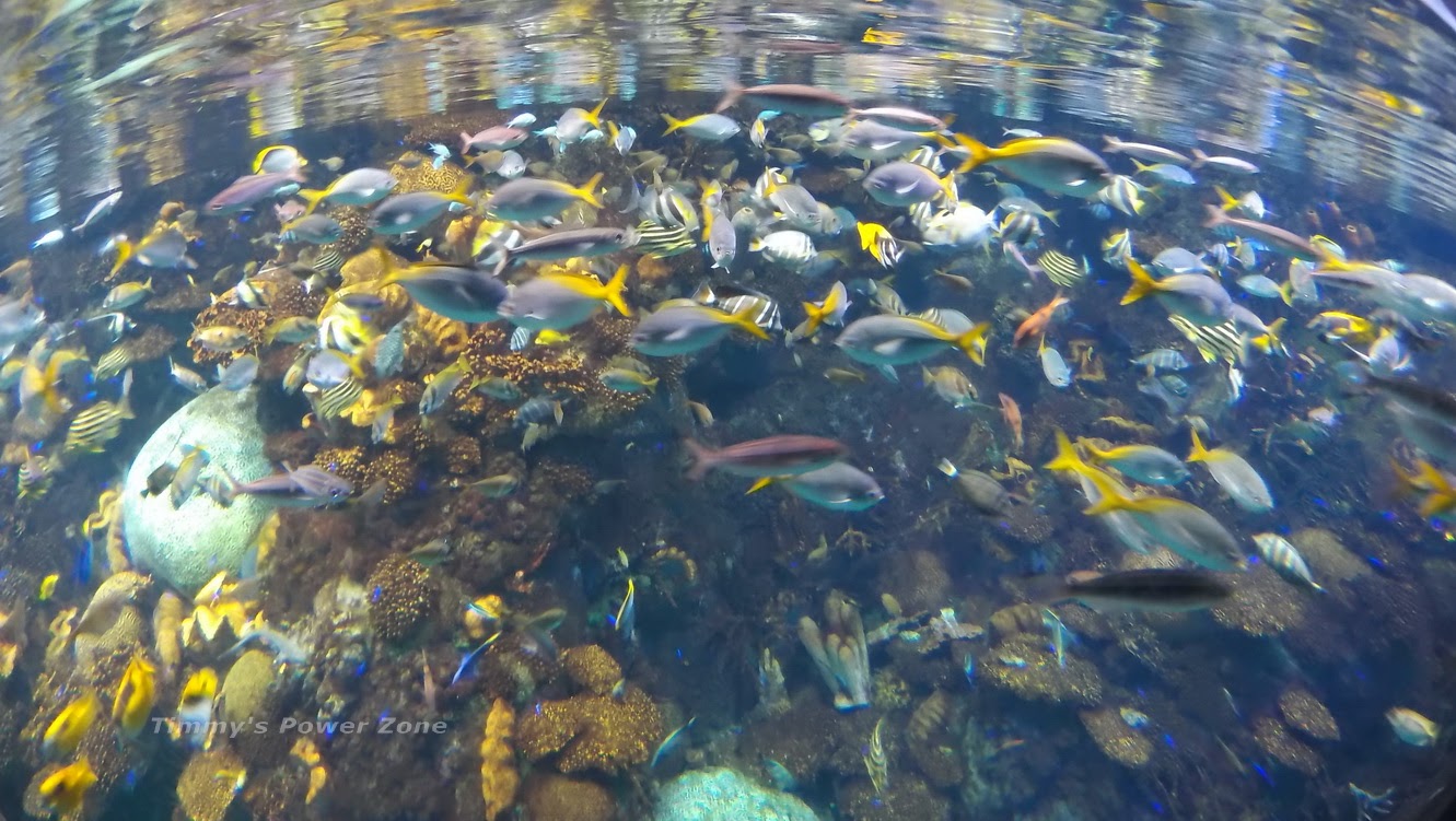 這是大堡礁主題區,裡面充滿耳帶蝴蝶魚、尾斑光鰓魚等等