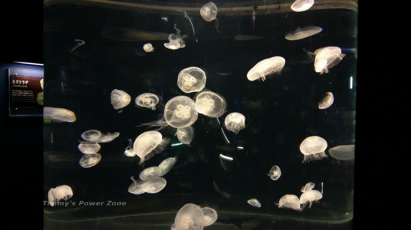 「水母展示區」展出了各式各樣的水母,分成好幾個水槽,每個都不同,看水母飄阿飄的好療癒