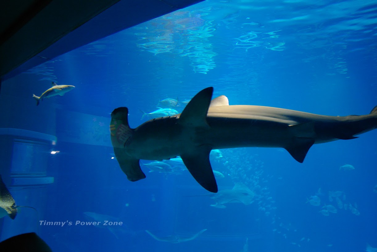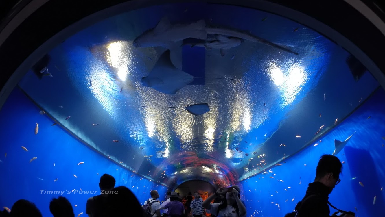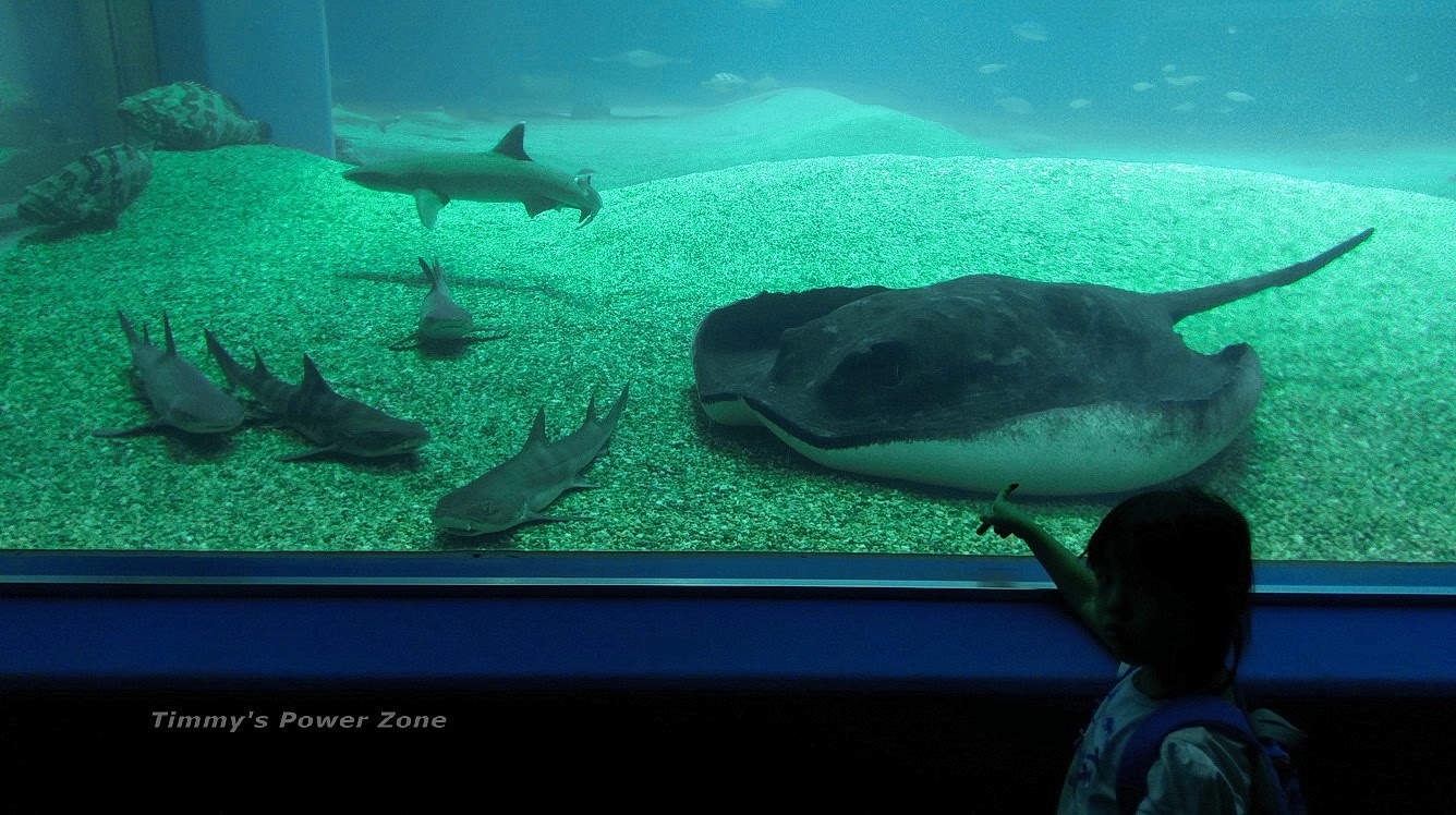 其實照片很難呈現出實地觀賞的臨場感,想像站在整片落地窗前,鯊魚、魟魚就在你面前游來游去