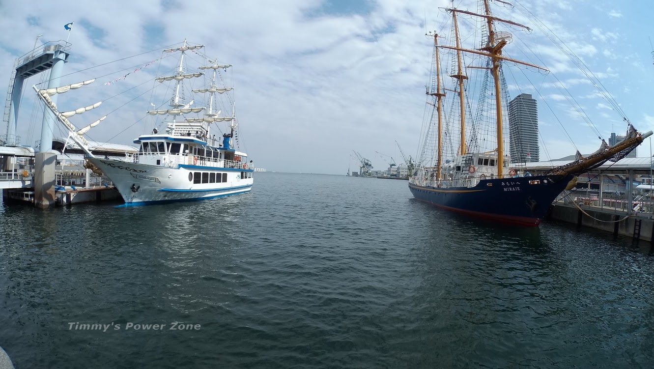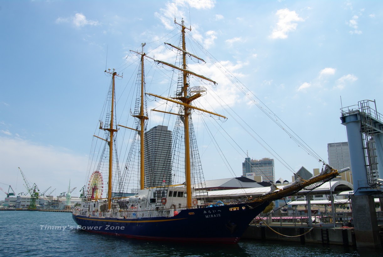 兩艘類似頭一天在大阪港搭乘的「聖瑪麗亞號」,風格蠻雷同的。不過左邊的船桅上竟然有帆布?搞不好是真的可以迎風行駛的帆船呢!