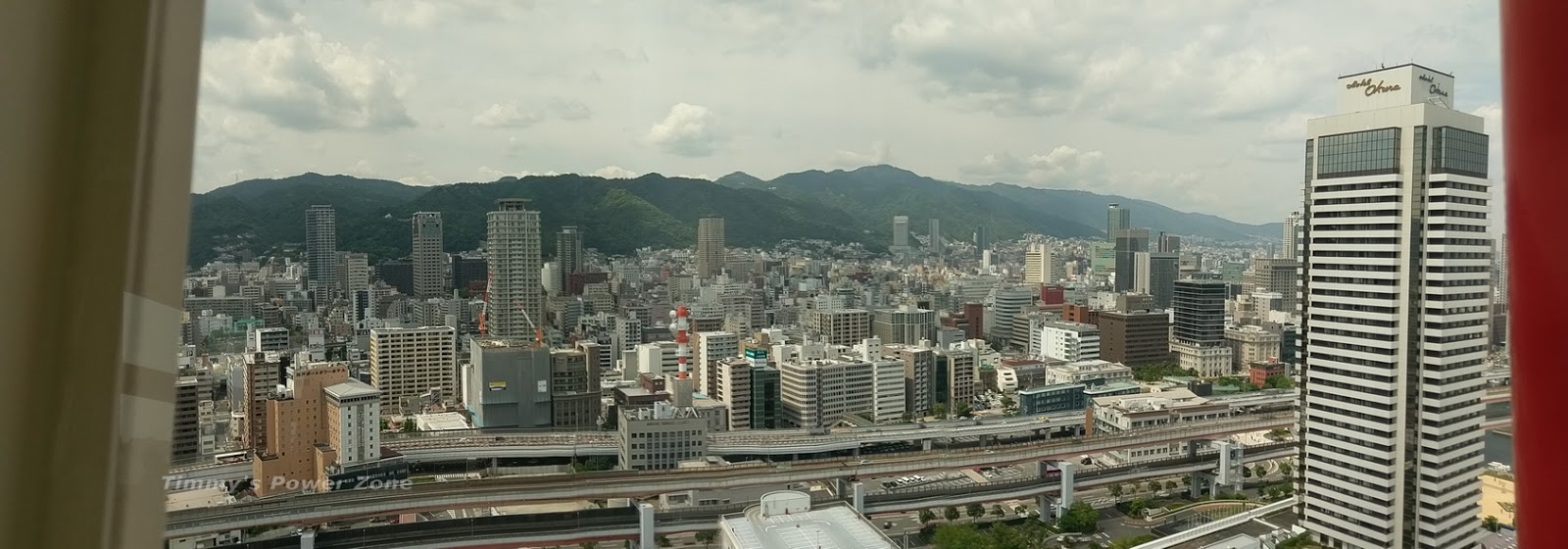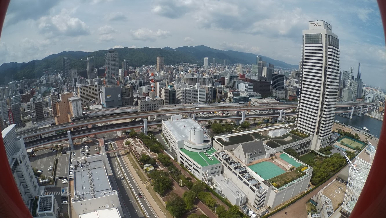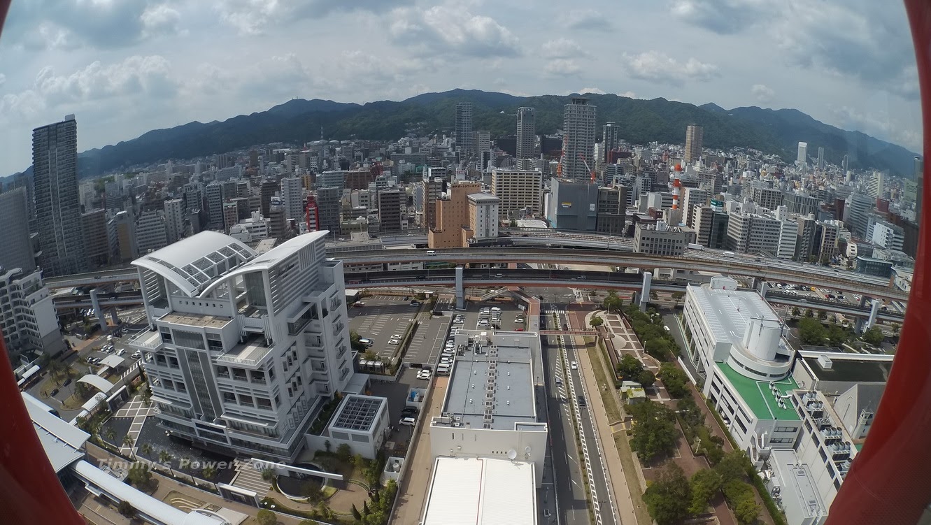在正下方拍的角度特別雄偉,雖不是什麼高樓,但這高度也是夠將整個神戶納入眼底了