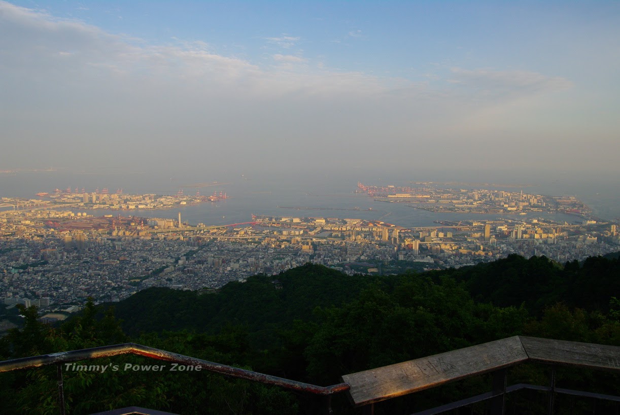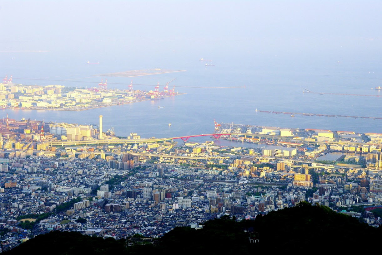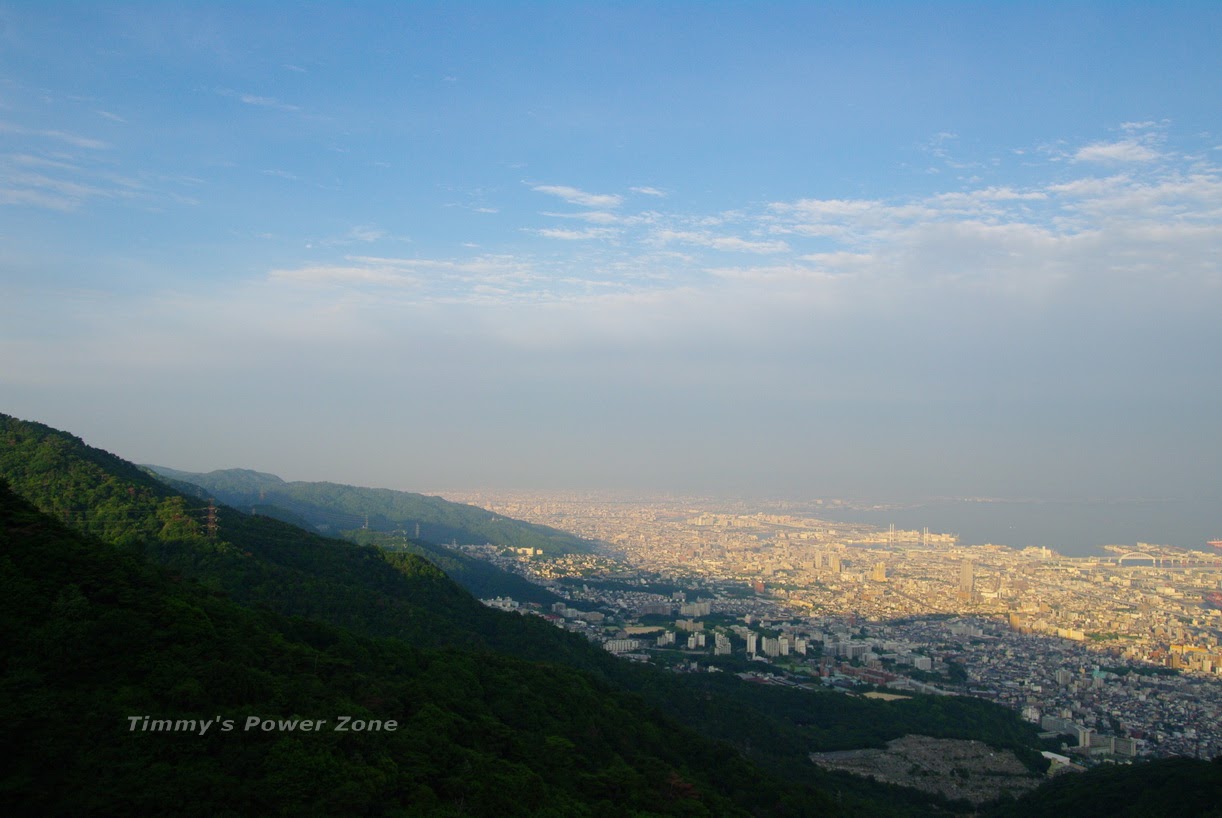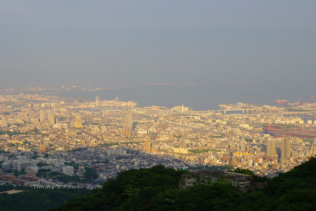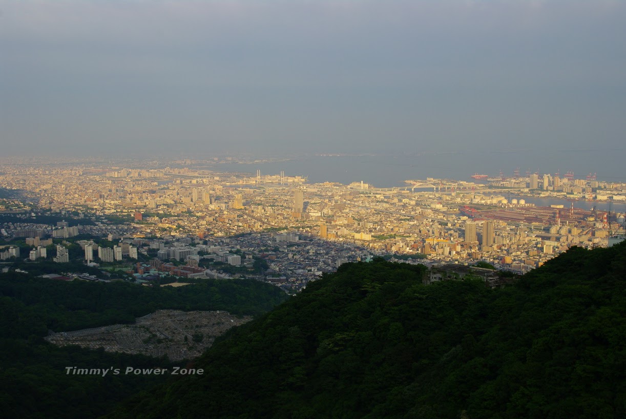 看起來神戶應該很早天黑,已經有一部份面積的城市已經被摩耶山的影子遮住了