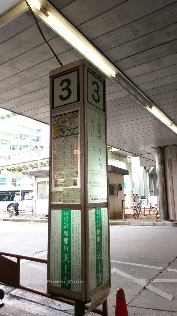 這裡會看到醒目的JTB旅行社招牌,這是最明顯的地標啦~旁邊懸掛的公車指示牌即顯示18號 摩耶山...。