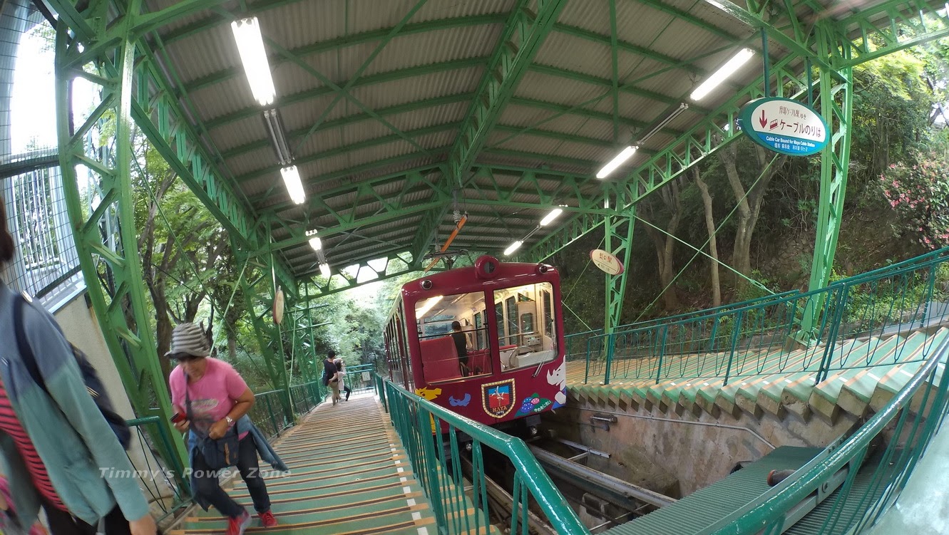 上山的路程大約有7~8分鐘,中間穿過隧道後就會與下山的纜車會車,會車的地方軌道會1分為2,會車後再2合為1,挺有趣的。(往下翻有縮時影片)