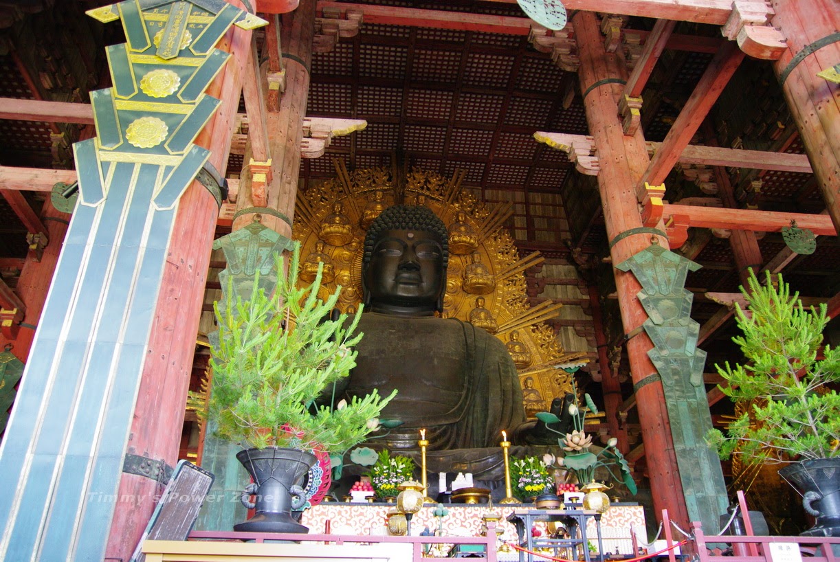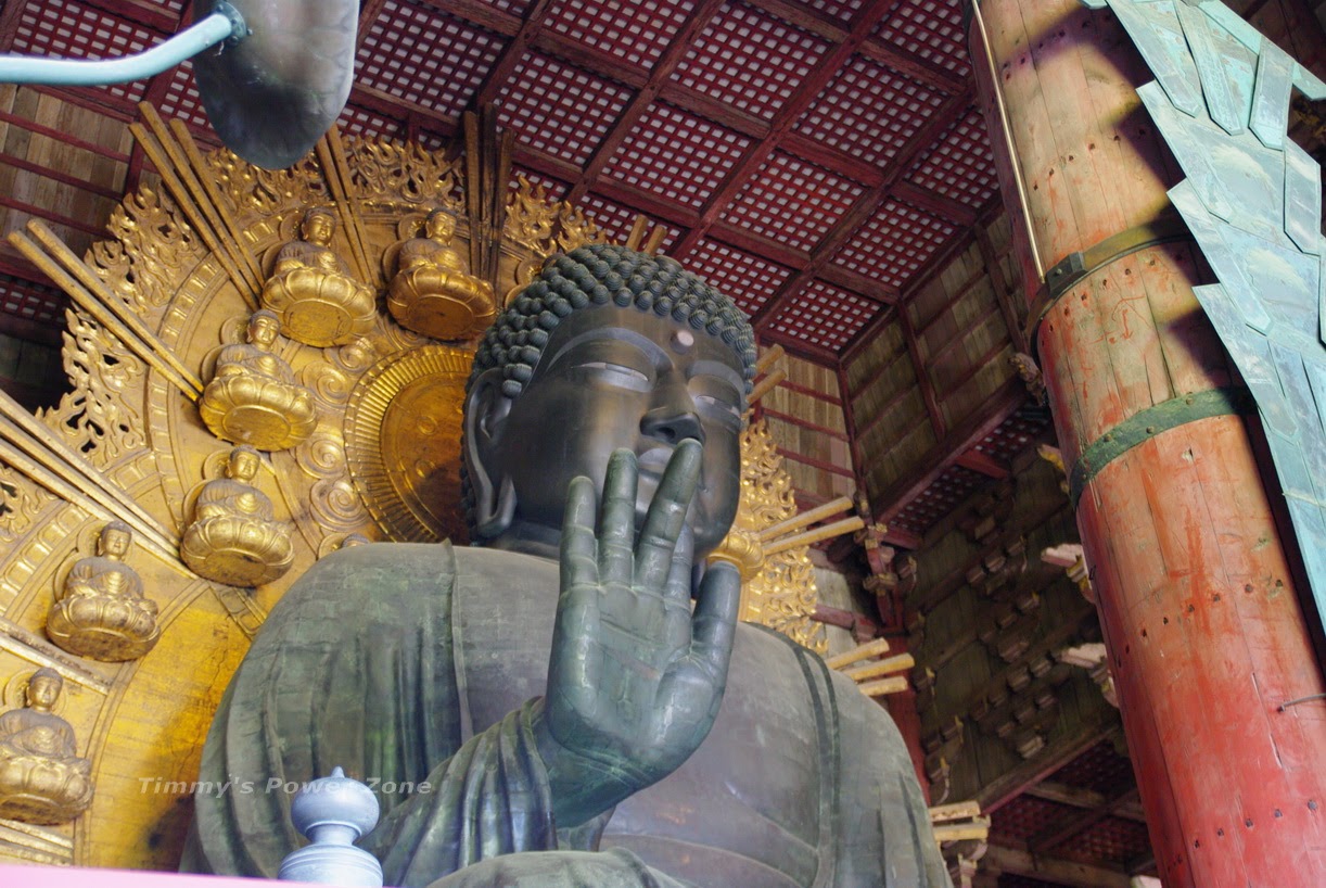 進門即可看到主要祀奉的「東大寺盧舍那佛像」,高有15尺(約6層樓高),在這麼巨大的寺廟之下,佛像這麼大好像也不足為奇了?XD