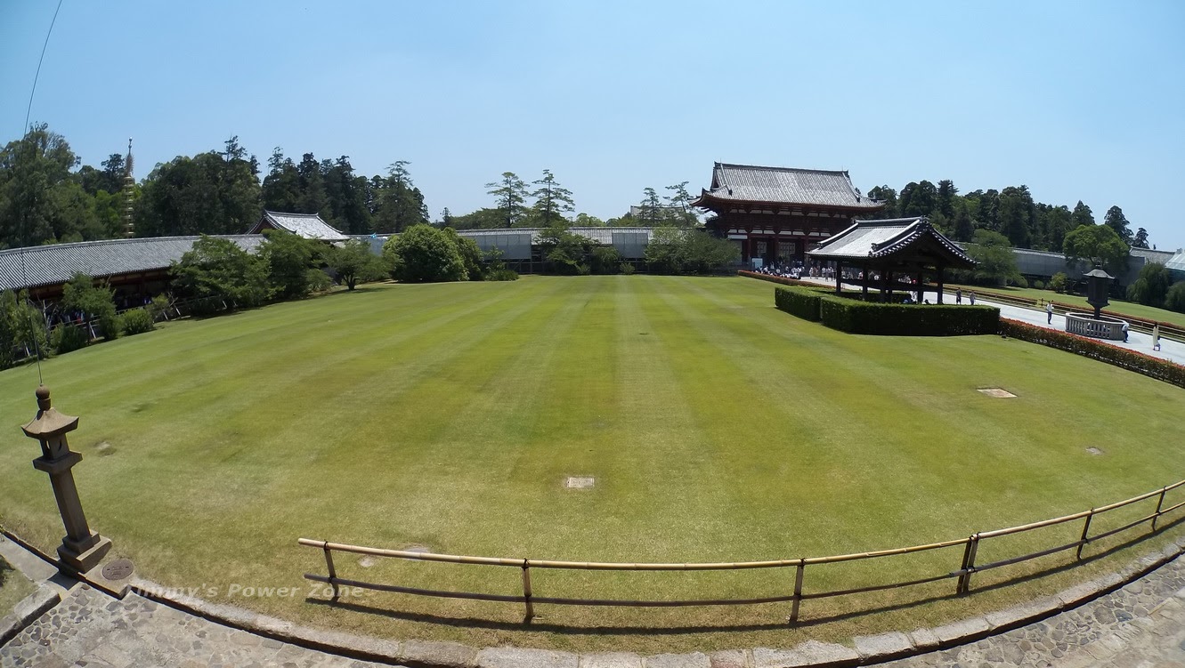 離開東大寺前一景,草皮整齊的跟棒球場一樣