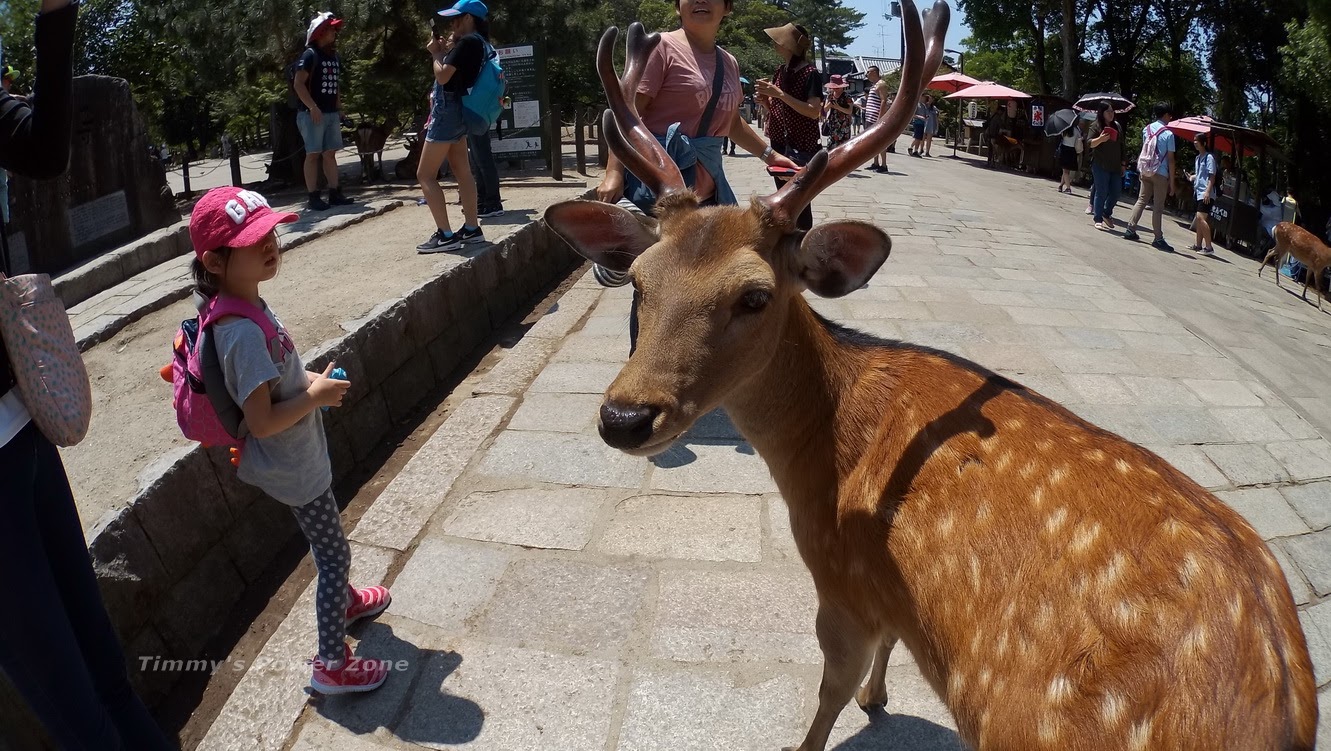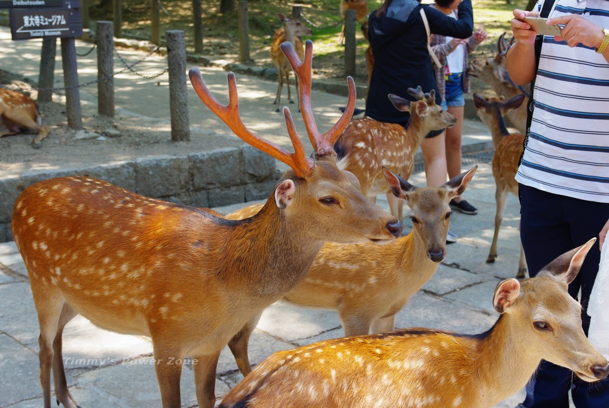 第一次這麼近距離的接觸奈良鹿(動物園要有這種近距離接觸幾乎不可能阿!),可以很清楚的看到鹿的每一個部位細節,鹿角在陽光下感覺閃閃發光的,有種很不實際的感覺(好像假的,但卻是真真實實!)