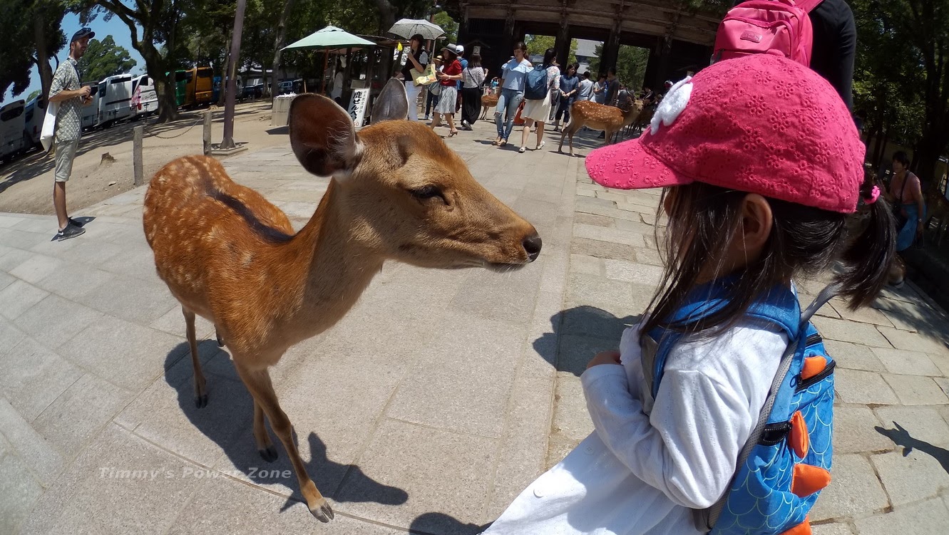 出國玩比上班還累,尤其是帶小孩到這種有點時差的地方,小孩哪受得了這種整天都在玩、走路、吃東西的行程。但是今天要去奈良搭車還得40分鐘,還是得把小孩叫起來,於是播放昨天在神戶麵包超人拍攝的影片是最快方式,小孩立馬彈起來~