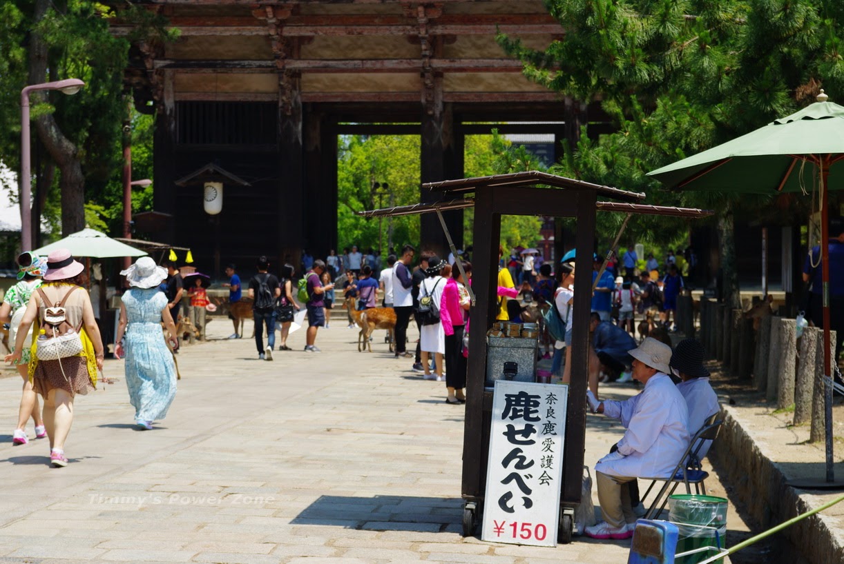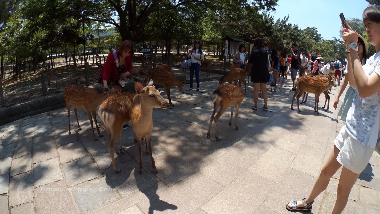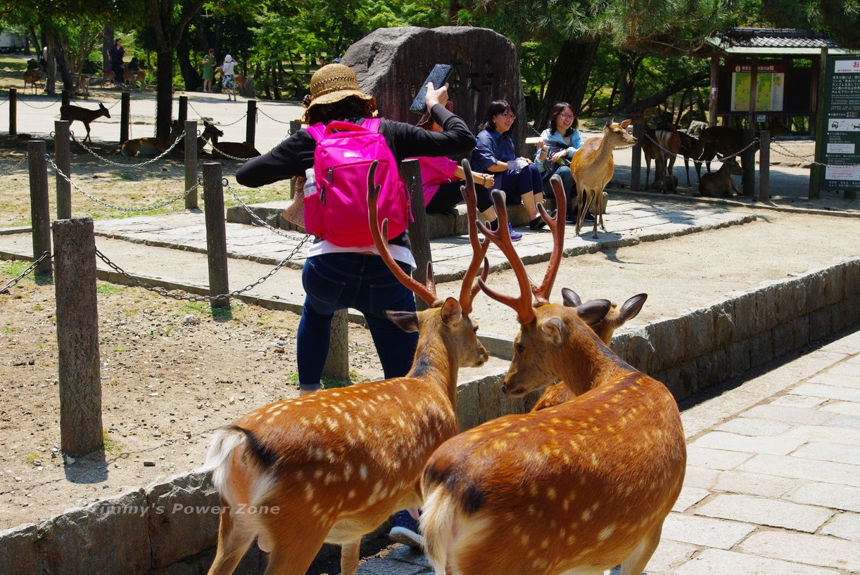 但如果你有食物給鹿吃,就完全不一樣了,公園內有好幾個攤販販售「鹿餅」,神奇的是攤販周圍都沒有鹿阿!