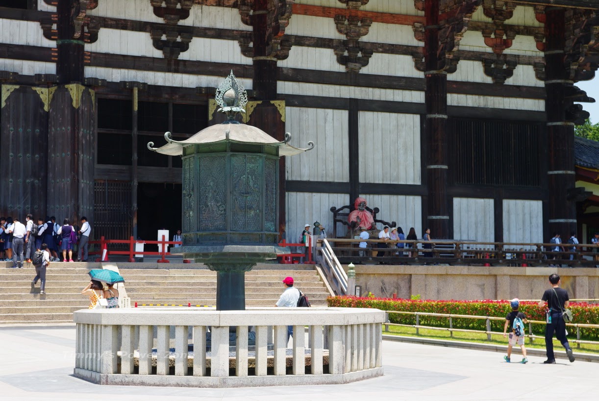 光一個門片就是成人的3~4倍高,可以想像這寺廟的高度有多驚人,而據說現在的東大寺是1708年重建版本比起最初的規模已經是小了4成,真是無法想像